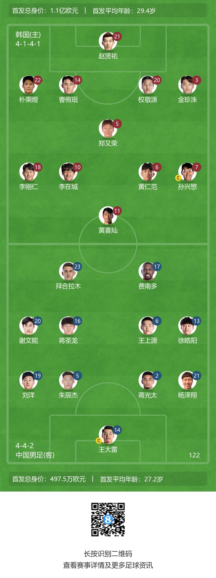 国足vs韩国首发↓