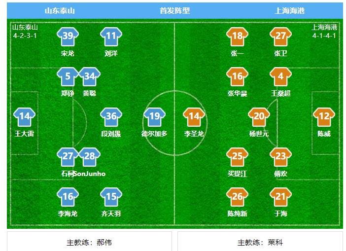 比赛战报戳>>>>>中超-段刘愚破门莫伊塞斯点球绝平胡靖航传射 泰山2-2海港